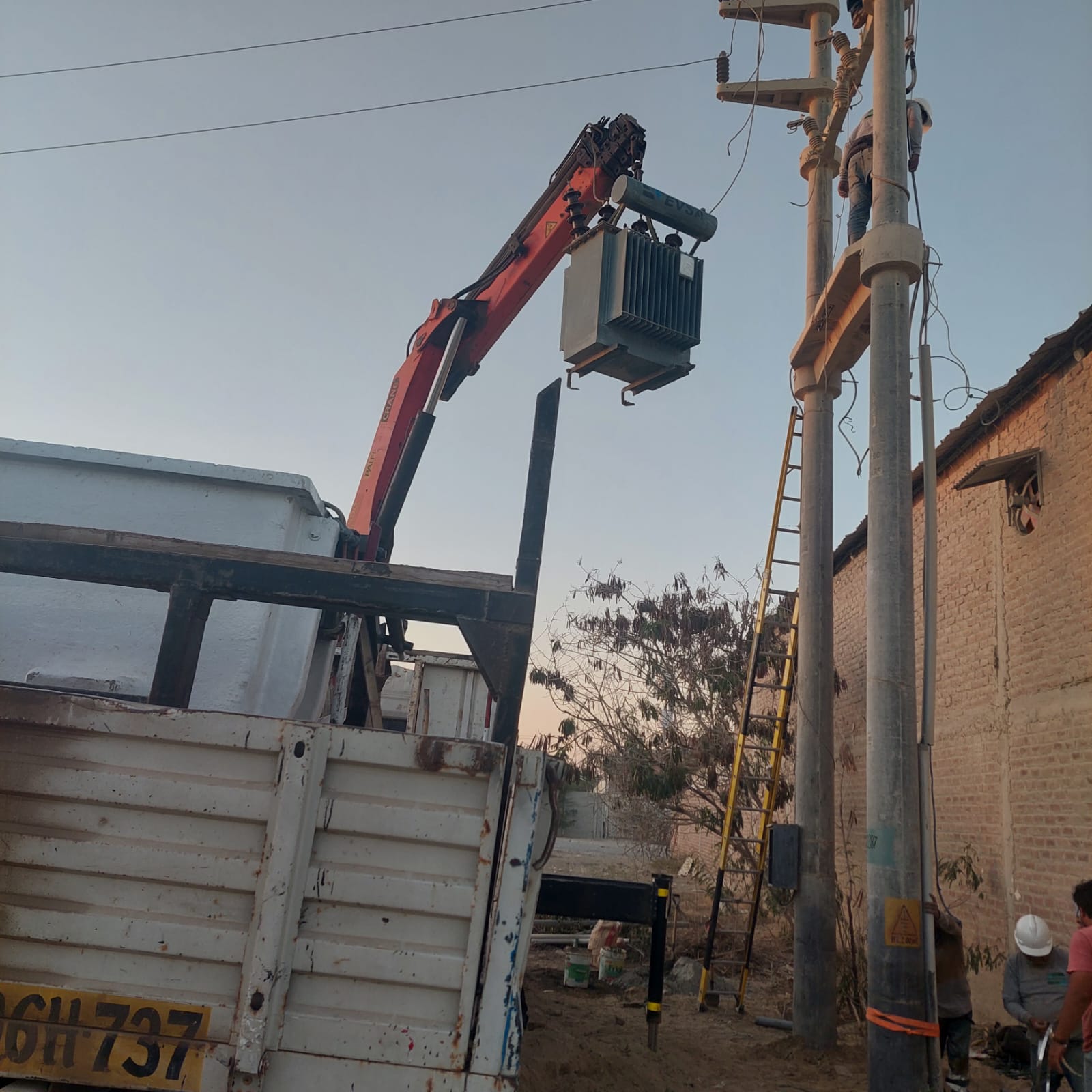 Reubicación de armado biposte de media tensión con transformador para cumplimiento normativo municipal y seguridad eléctrica.